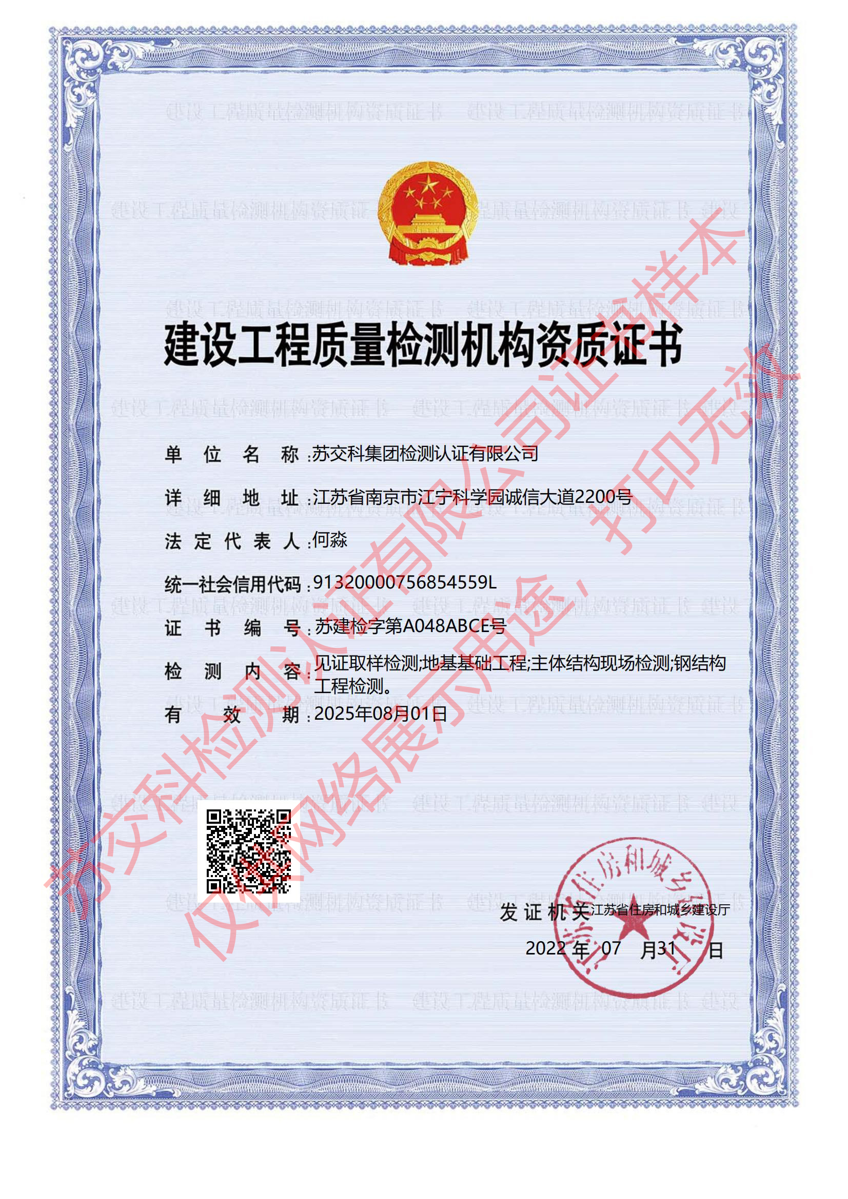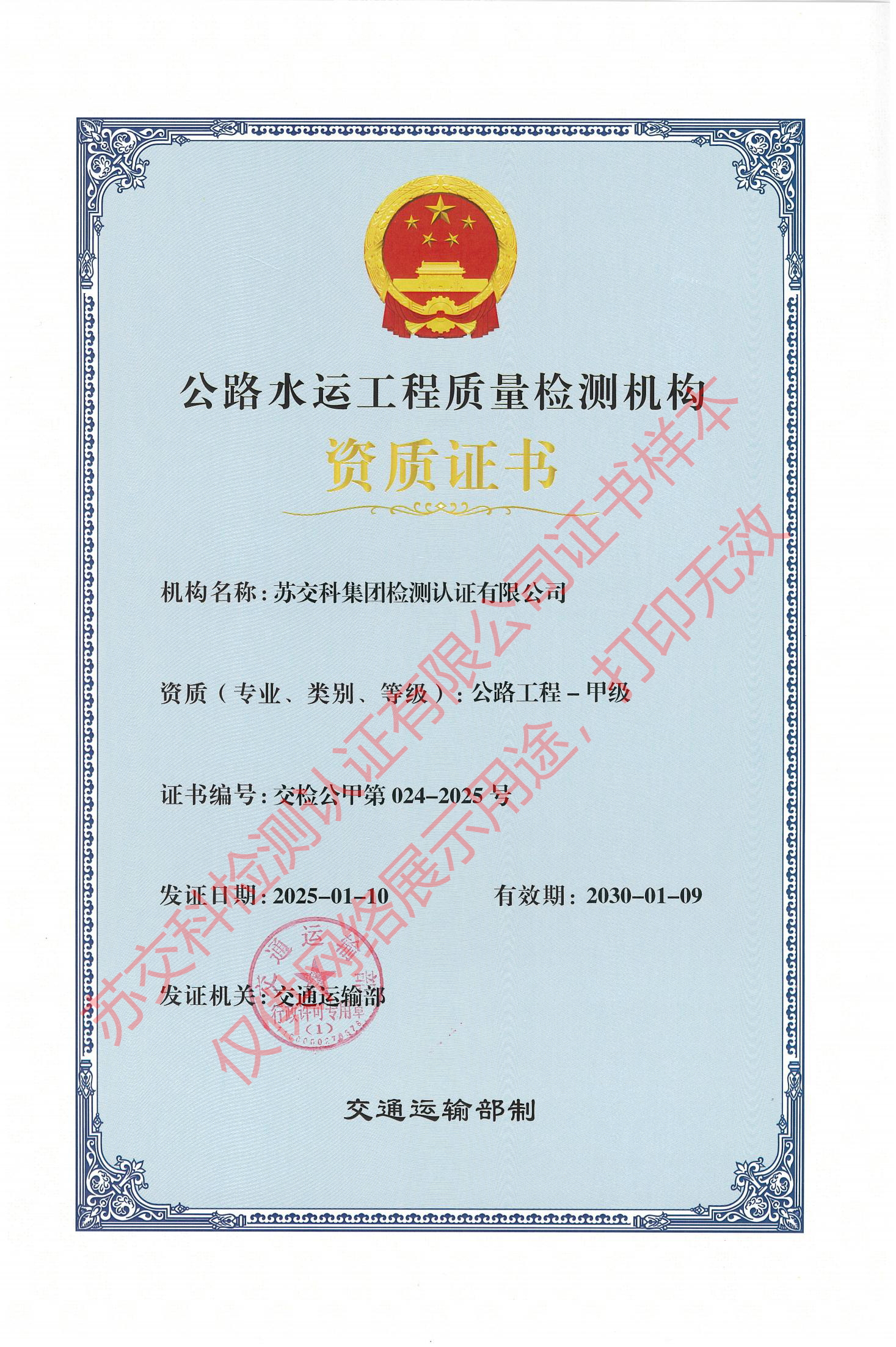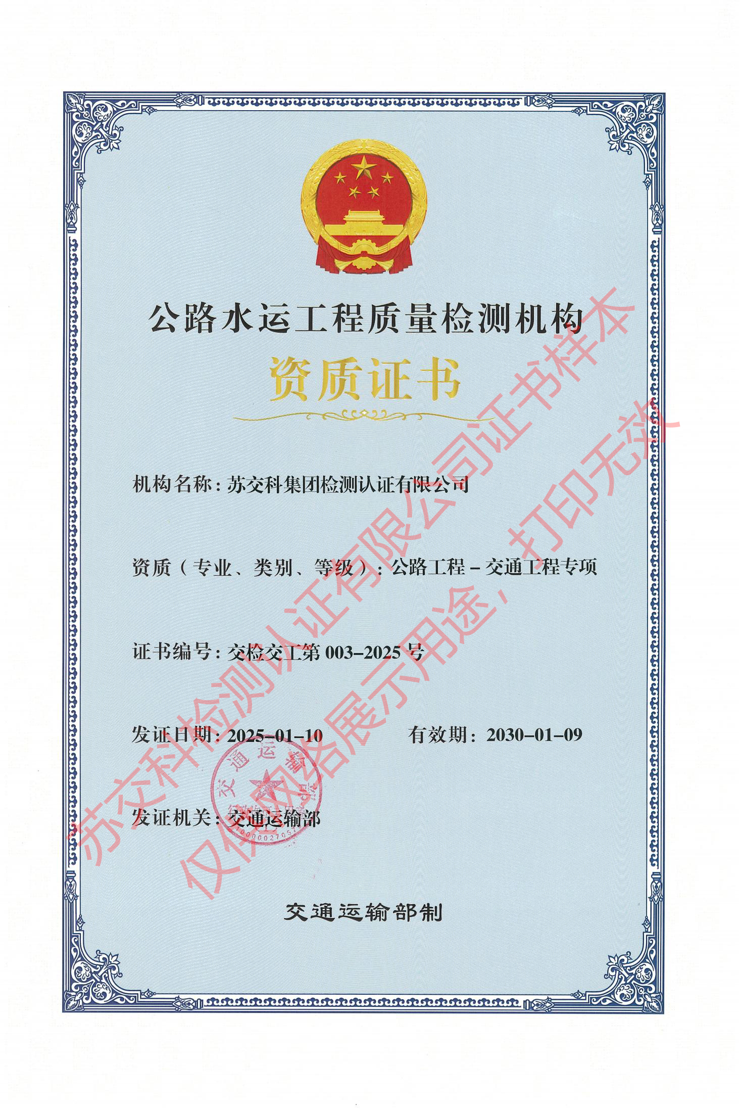集團資質蘇交科擁有工程行業(yè)各領域甲級資質,包括城鄉(xiāng)規(guī)劃甲級資質;工程咨詢綜合甲級資質;工程咨詢專業(yè)甲級資質(公路、生態(tài)建設和環(huán)境工程、水文地質、工程測量、巖土工程、城市規(guī)劃、鐵路、城市軌道交通、港口河海工程、市政公用工程(市政交通、給排水)、水利工程、旅游工程);工程設計綜合甲級資質;工程勘察綜合類甲級資質;測繪甲級資質;公路工程和市政公用工程總承包一級資質;公路工程、水運工程、市政公用工程監(jiān)理甲級資質;公路工程甲級、公路工程交通工程專項、水運工程材料甲級和水運工程結構甲級試驗檢測資質。