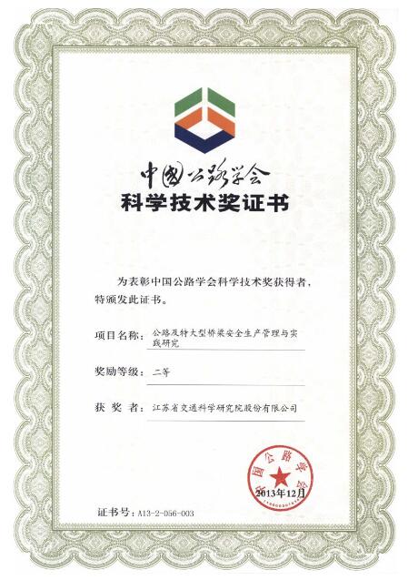 蘇交科依托科研平臺承擔(dān)了大量的國家和省級重點科研攻關(guān)、試驗檢測和產(chǎn)品開發(fā)工作,先后主編、參編國家、行業(yè)、地方等各類標(biāo)準(zhǔn)300余項;累計開展國家、省部級科研項目740余項;累計獲得科研、設(shè)計、咨詢等各種獎項近1200余項,其中國家科技進步獎二等獎2項,國家技術(shù)發(fā)明二等獎1項,省級科技進步獎270余項。